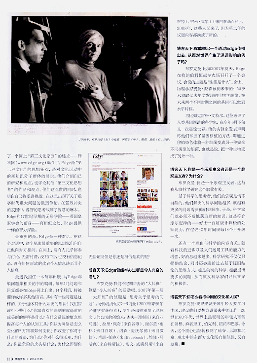 John Brockman is an American literary agent and author specializing in scientific literature. He established the Edge Foundation, an organization that brings together leading edge thinkers across a broad range of scientific and technical fields.